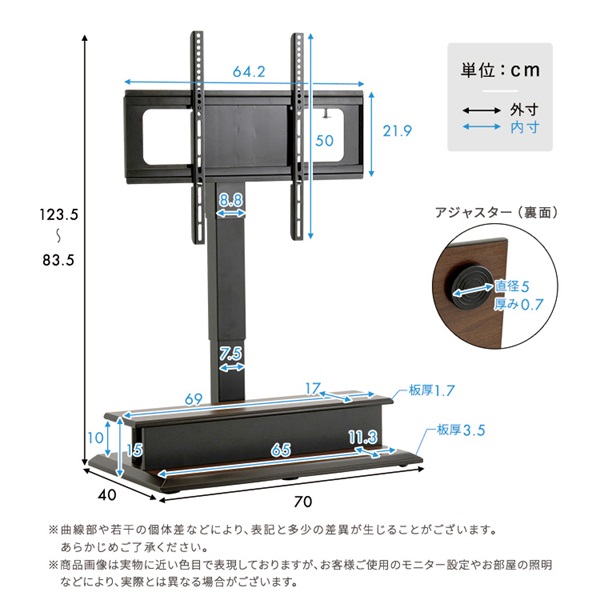 (約)幅70×奥行40×高さ83.5~123.5cm