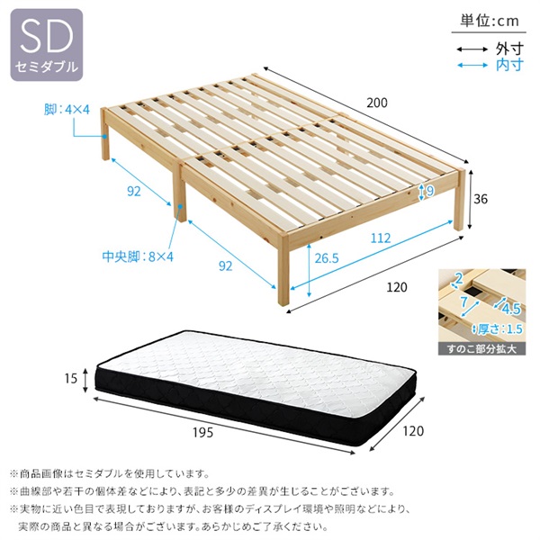 マットレスSD:(約)幅120×奥行195×高さ15cm(コイル数:589個)